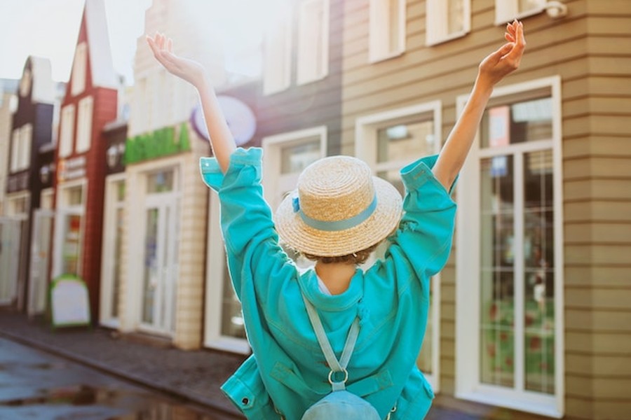 Une voyageuse enthousiaste profite d'une Coolcation : où partir en Europe pour passer un été loin de la chaleur au milieu de ruelles colorées.