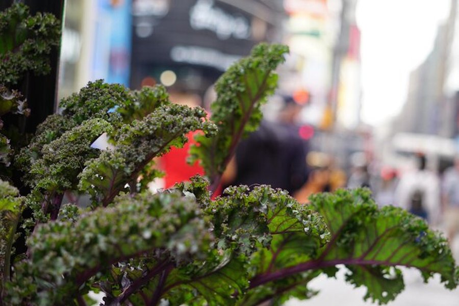 Des feuilles de chou kale vigoureuses s'épanouissant en ville, une étape clé pour créer une forêt-jardin sur 100m2 : guide complet pour l'autosuffisance en milieu urbain.